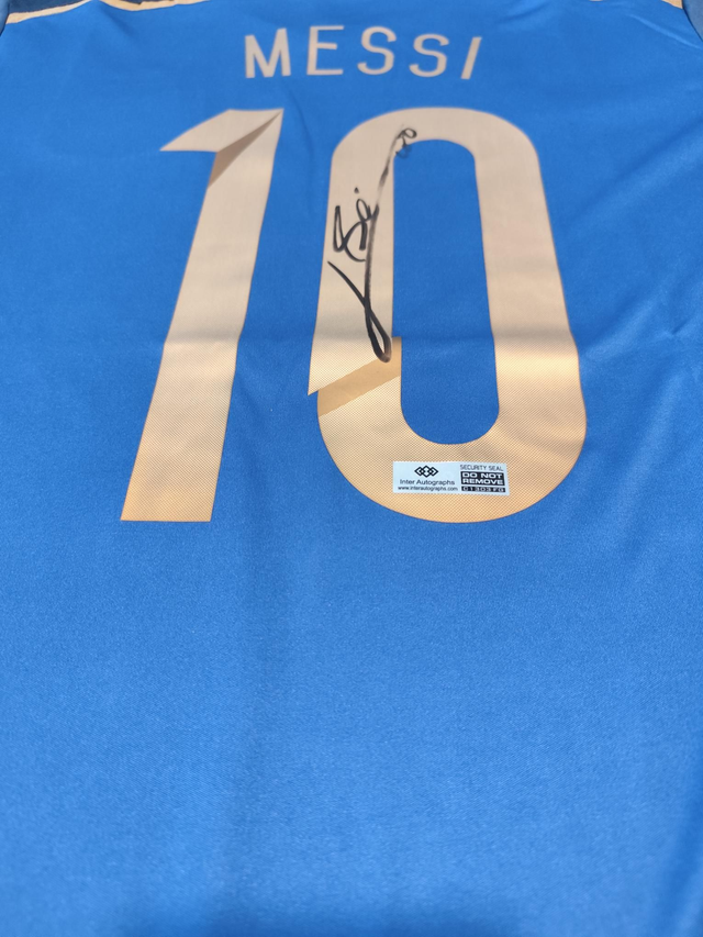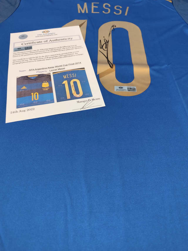 Grijp je kans om een historisch verzamelstuk te bezitten. Dit iconische blauwe uitshirt is een eerbetoon aan de WK-finale van 2014 tegen Duitsland in Rio de Janeiro en is persoonlijk gesigneerd door Lionel Messi.