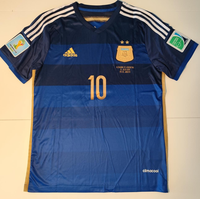 Details: Voorzien van de wedstrijdbedrukking "Alemania vs Argentina - 13 Julio 2014", officiële FIFA World Cup badges op de mouwen en de "Argentino" neck-tag.