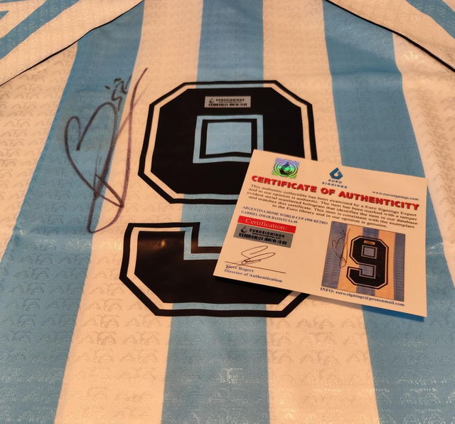 Legendarische Status: Batistuta is een icoon van het Argentijnse voetbal; zijn handtekening is zeer gezocht door verzamelaars wereldwijd.