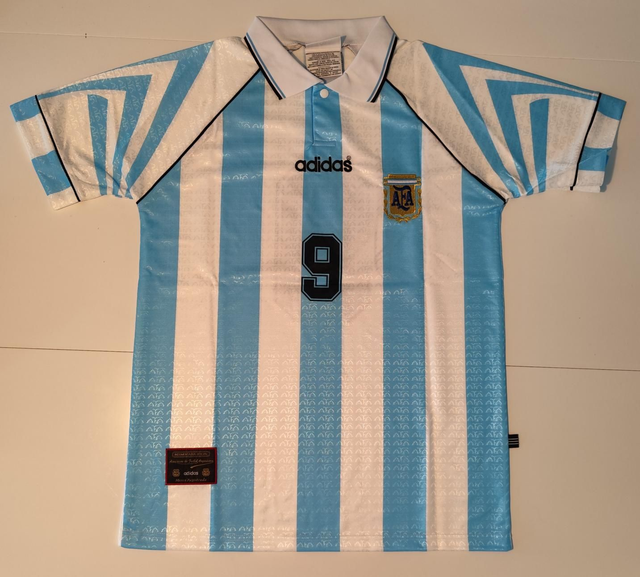 Dit shirt met het klassieke ruitjespatroon in de stof en de traditionele kraag ademt de jaren '90 uit, de periode waarin Batistuta uitgroeide tot een nationale held.