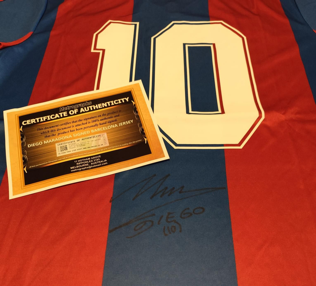 Uniek Verzamelobject: Gesigneerd Diego Maradona FC Barcelona Retro Shirt