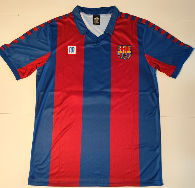 Dit prachtige retro shirt, uitgevoerd in de iconische 'Blaugrana' kleuren van FC Barcelona, brengt u terug naar de vroege jaren '80 toen 'El Pibe de Oro' de velden van Camp Nou betoverde.